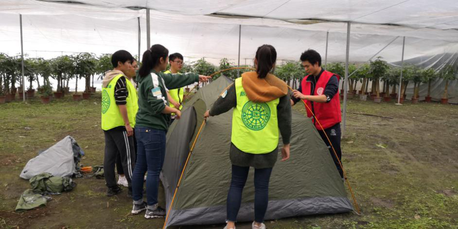 不僅要自己動(dòng)手準備住宿的地方,還要自己動(dòng)手布置搭建需要拓展的工具,這還真是個(gè)不易的工作,難為了我們90后的志愿者們