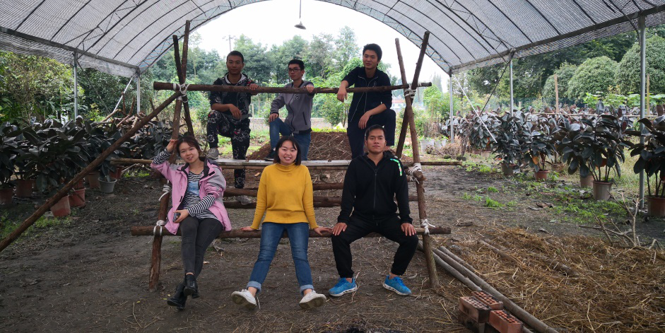 同路人志愿者們在成都香草山示美園藝設計有限公司的苗圃基地拓展活動(dòng)
